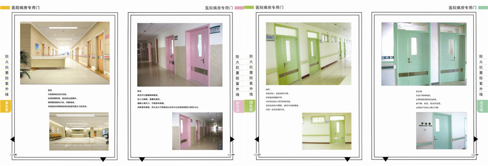公司凭借着超前的设计理念、先进的机械设备及优异的技术团队,设计生产了深为各大医院所喜爱的医院专用门产品,多年来成功为烟台海港医院、烟台山医院、济南医院、济南市妇幼保健院、泰安市中心医院、秦皇岛中心医院、滨州沾化县医院、任丘市友谊医院等二十余家医院提供了病房门的测量及安装,并不断改进工艺以适应医院的高标准要求。